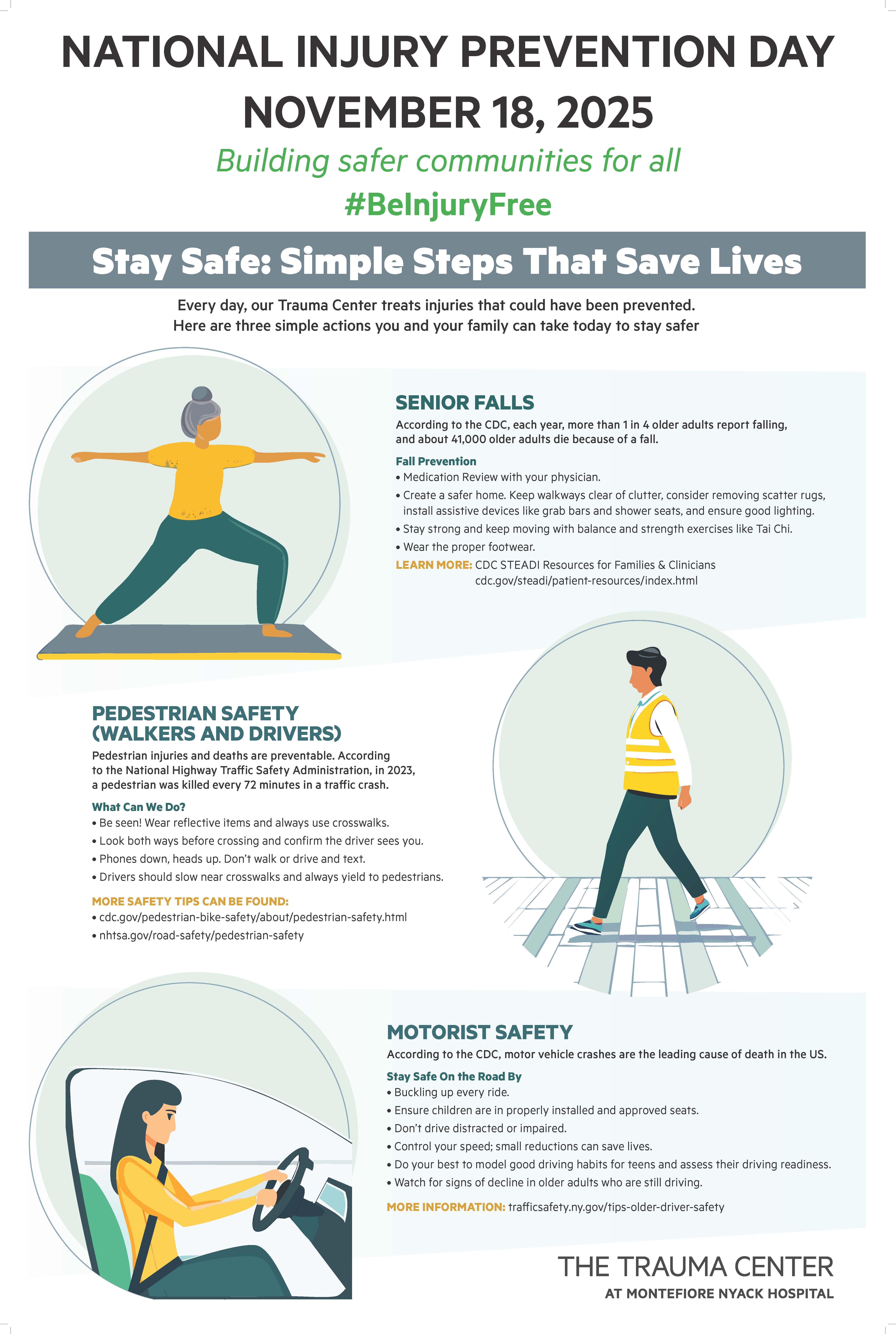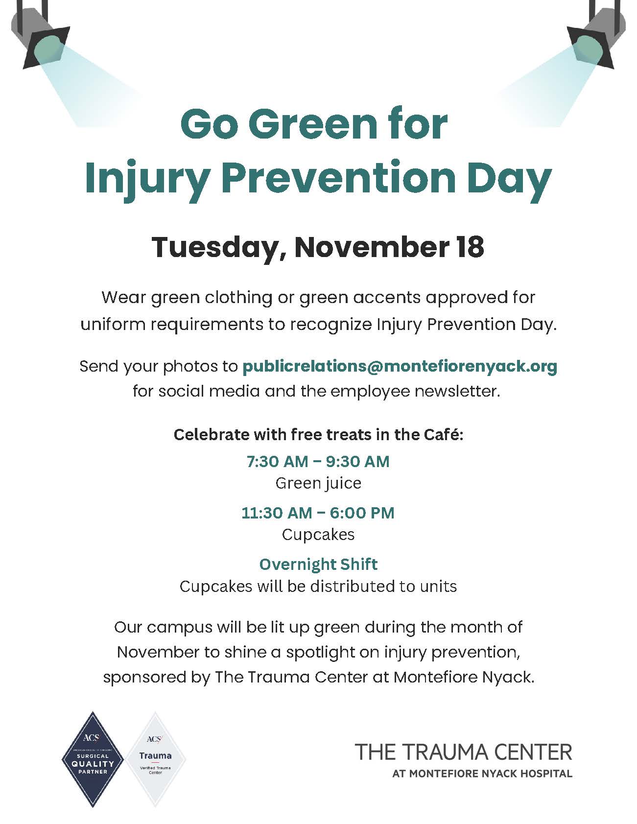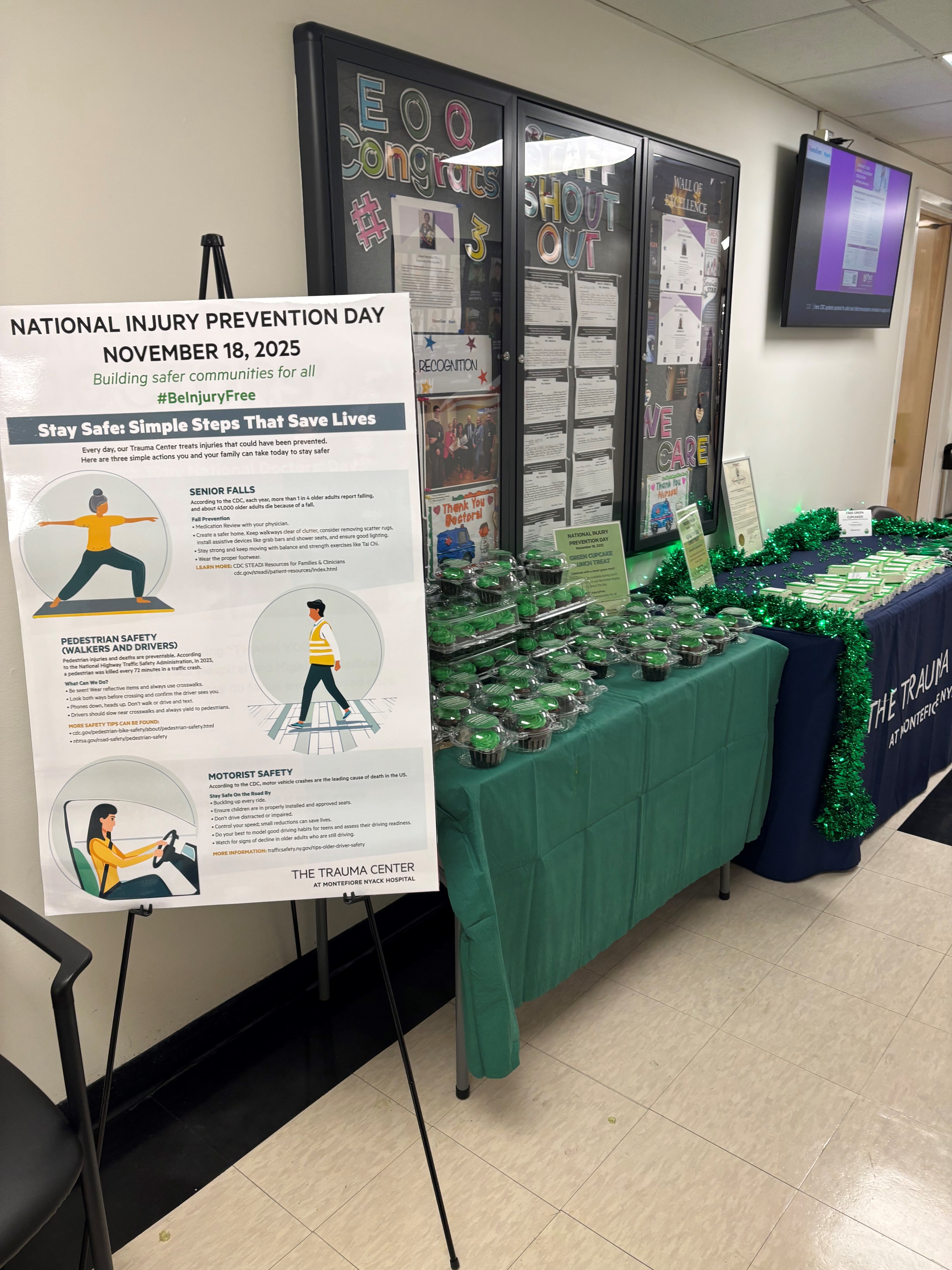 Proclamation from Rockland County Executive Ed Day. published an infographic on social media and our website for the month of November. The hospital lit up green and one of the police stations lit up green. That police station also posted info about injury prevention outside of their station.